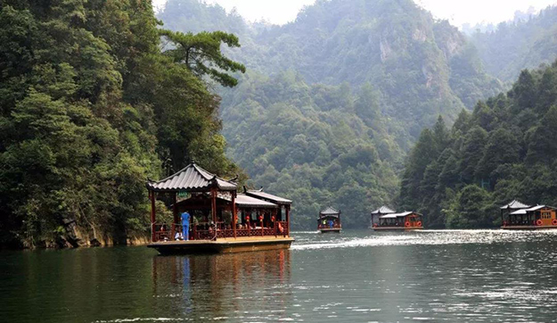 世界自然遺產(chǎn)——寶峰湖:被稱為“世界湖泊經(jīng)典”,屬張家界地貌內(nèi)自然山水與人文民俗相結(jié)合的湖泊型自然風(fēng)景區(qū)。寶峰湖風(fēng)景區(qū)集山水于一體,融民俗風(fēng)情于一身,尤以奇秀的高峽平湖絕景、“飛流直下三千尺”的寶峰飛瀑、神秘的深山古寺聞名。乘船游覽,欣賞仙女照鏡、孔雀開屏、金蟾含月等景點(diǎn),船在湖中游,綠之韻營銷精英與土家阿哥、阿妹對唱山歌。
