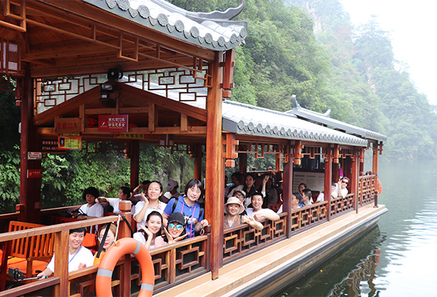 奇峰三千,秀水八百。見識過張家界的山峰峻峭,更不能錯(cuò)過風(fēng)景秀麗的金鞭溪景區(qū)。行程的最后一天,綠之韻家人們來到被譽(yù)為“世界上最美麗的峽谷之一”的金鞭溪,溪畔花草鮮美,鳥鳴鶯啼,人沿清溪行,勝似畫中游。家人們欣賞著大自然贈(zèng)與的美好,呼吸著天然氧吧里的新鮮空氣,感嘆著這次旅游的收獲與快樂,紛紛用手機(jī)將美好定格,舍不得結(jié)束這次美好的張家界之旅。