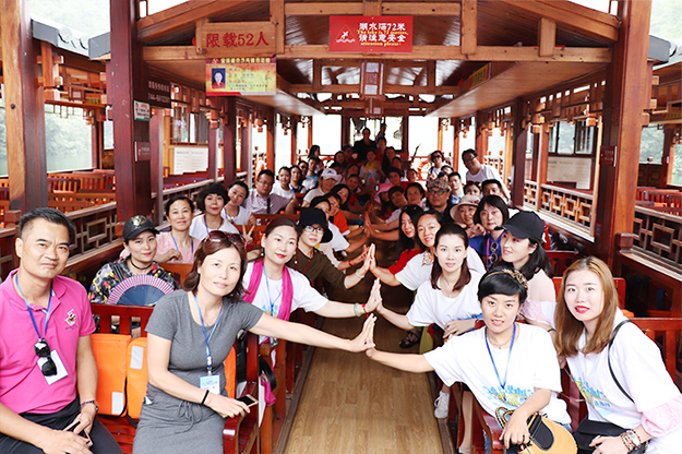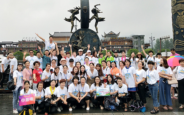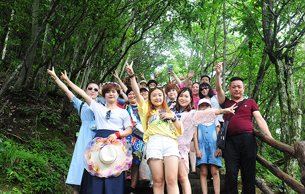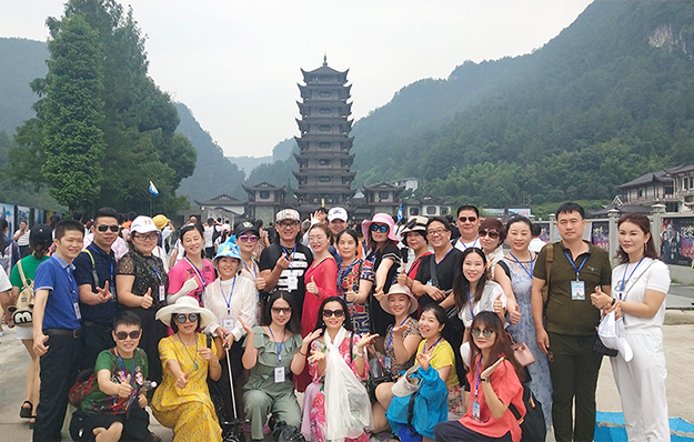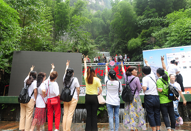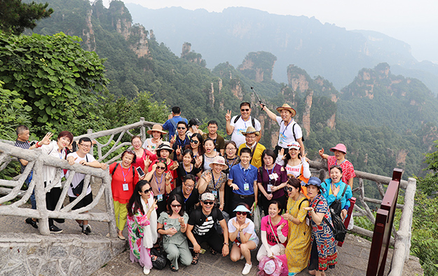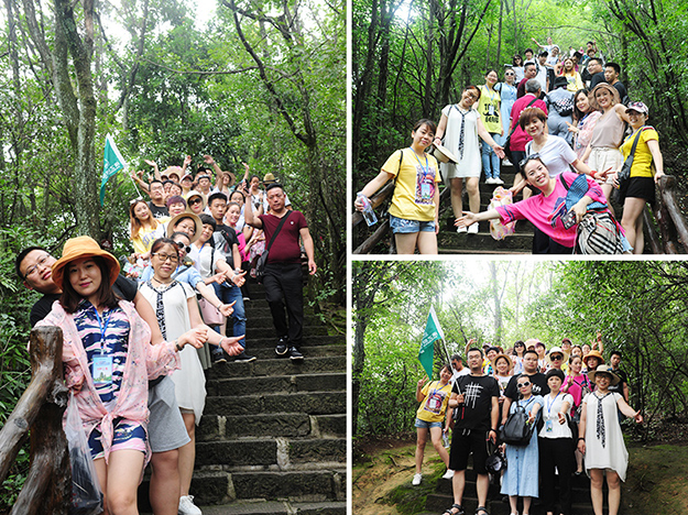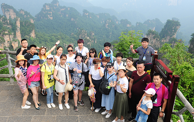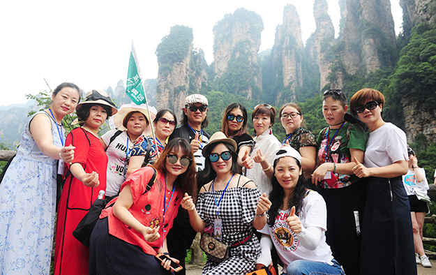 在電影《阿凡達(dá)》山峰原型-袁家界景區(qū)、“世界峰林之王”——天子山景區(qū)、十里畫廊,綠之韻營銷精英們深深為那不著雕飾的原始生態(tài)的自然美、飽經(jīng)風(fēng)霜的滄桑美、積淀厚重的文化美所吸引,所感動(dòng),所震撼。千峰穿云高聳,萬頃松杉蔥蘢,石林百態(tài)千姿,幽谷碧水淙淙。進(jìn)入景區(qū),綠之韻營銷精英們統(tǒng)一乘坐“世界第一梯”百龍?zhí)焯萆仙?。百龍?zhí)焯輾鈩莼趾辏蚱洹笆澜缟献罡?、運(yùn)行速度最快、載重量最大的電梯”而被載入吉尼斯世界紀(jì)錄。家人們乘電梯以5米/秒的速度上山,慷慨科技進(jìn)步的同時(shí),驚嘆于張家界的高山絕景和大自然的鬼斧神工。雖是炎炎夏日,山上微風(fēng)徐徐,風(fēng)景如畫,綠之韻家人們先后游覽了御筆峰、仙女散花、賀龍公園、天子閣、賀龍銅像、賀龍墓、西海峰林等自然奇景,感受淳樸的民情和苗家奇特的民俗,品嘗獨(dú)具風(fēng)味的民族食品。拾級而上,相互鼓勵(lì),跨越過七千多級臺階,走完了全程。一路上,留下了綠之韻人的堅(jiān)毅腳步和歡聲笑語!