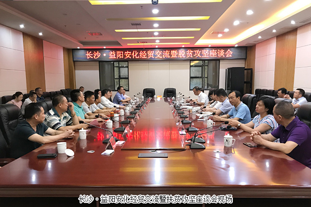 2018年7月4—5日,中共益陽市委常委、組織部長何俊峰,長沙市政協(xié)副主席、市工商聯(lián)主席彭繼球,益陽市工商聯(lián)主席劉方軍,長沙市工商聯(lián)副主席劉立紅,湖南省工商聯(lián)(總商會)副會長、長沙市安化商會會長、綠之韻集團(tuán)董事長胡國安以及省會民營企業(yè)家代表一行赴湖南安化開展產(chǎn)業(yè)扶貧調(diào)研工作。中共安化縣委副書記王新宇,中共安化縣委常委、組織部長陳飛燕,安化縣人民政府副縣長譚羅垠,安化縣政協(xié)副主席、縣工商聯(lián)主席李艷云等陪同調(diào)研。