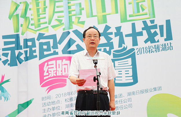 湖南省民政廳副巡視員余躍上臺致辭。他表示,“綠跑”不僅是一次全民健身活動,更是一次公益幫扶的生動實踐。他呼吁更多的愛心人士、企業(yè)加入到公益綠跑的行列,共同關愛貧困母親的身體健康,為建設富饒美麗幸福新湖南貢獻力量。