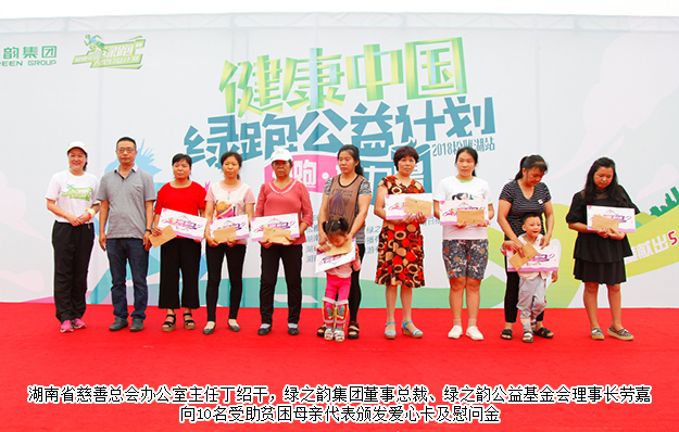 為愛奔跑,你的“5.20”是她們從貧困到幸福的距離。活動現場,湖南省慈善總會辦公室主任丁紹干,綠之韻集團董事總裁、綠之韻公益基金會理事長勞嘉上臺向10名受助貧困母親代表頒發(fā)愛心卡及慰問金。據了解,此次公益綠跑活動以“綠跑·她力量”為主題,聚焦城鎮(zhèn)低保“兩癌”婦女,除了活動現場開展愛心募捐活動以外,綠之韻公益基金會還聯合騰訊公益平臺同步上線“幫貧困母親遠離兩癌”愛心募捐公益項目,所籌得的全部善款將用于“兩癌”貧困母親救助公益項目。