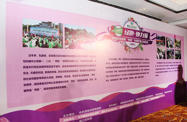 2018年5月16日,由中共湖南省委統(tǒng)戰(zhàn)部發(fā)起主辦,湖南省婦女聯(lián)合會(huì)、湖南省衛(wèi)生和計(jì)劃生育委員會(huì)、湖南省慈善總會(huì)、湖南省海外聯(lián)誼會(huì)指導(dǎo),中共益陽市委統(tǒng)戰(zhàn)部承辦,益陽市民政局、益陽市婦女聯(lián)合會(huì)、益陽市衛(wèi)生與計(jì)劃生育委員會(huì)組織實(shí)施,綠之韻集團(tuán)支持參與的大型公益項(xiàng)目“綠跑?她力量 關(guān)愛女性健康——‘兩癌’免費(fèi)公益檢查活動(dòng)啟動(dòng)儀式”在益陽市舉行。