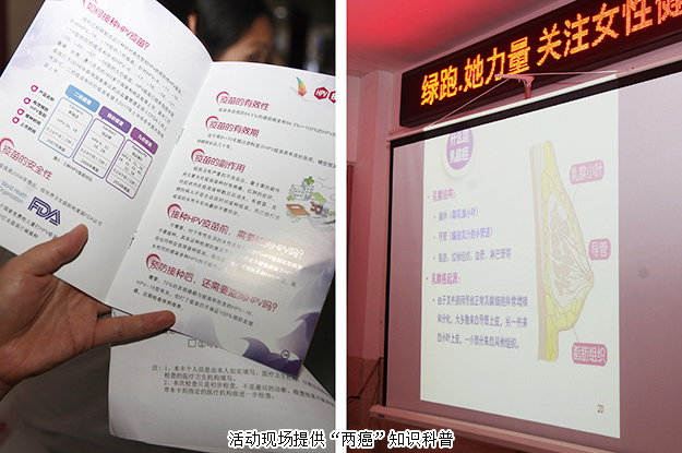科普“兩癌”預(yù)防知識(shí),傳播健康生活理念。為了加強(qiáng)廣大女性對(duì)“兩癌”的認(rèn)識(shí)及防治意識(shí),在益陽資陽區(qū)婦幼保健院,活動(dòng)組委會(huì)特別邀請(qǐng)了婦科專家醫(yī)師給當(dāng)?shù)剡m齡女性講解“兩癌”的相關(guān)知識(shí)與防治。專家醫(yī)師重點(diǎn)講述了“兩癌”的主要表現(xiàn)和一些日常預(yù)防措施和自我檢查方法,并根據(jù)臨床遇到的實(shí)際案例,生動(dòng)地告訴到場(chǎng)女性什么是“兩癌”,如何預(yù)防“兩癌”以及“兩癌”檢查的重要性。同時(shí),就大家關(guān)心的宮頸癌疫苗問題如宮頸癌疫苗的接種時(shí)機(jī)、接種年齡、接種疫苗后是否還要進(jìn)行宮頸癌檢查做了詳細(xì)的講解。從益陽市各個(gè)社區(qū)趕來的婦女群眾們,手持免費(fèi)檢查卡,右手腕上佩戴著為本次活動(dòng)特別設(shè)計(jì)的、象征著“愛與健康”的紅綠色絲帶,臉上洋溢著燦爛的笑容,井然有序地排著隊(duì)進(jìn)入診室進(jìn)行檢查。幾位剛剛從診室里出來,做完檢查的女性群眾笑著說道:“醫(yī)生剛說啦,我身體好著呢,啥問題都沒有!”“以前如果我們要去醫(yī)院做檢查,既要預(yù)約又要花錢,很不方便?,F(xiàn)在可好了,不僅能夠免費(fèi)檢查,還可以了解到很多健康知識(shí)。這是真正將實(shí)惠送到老百姓手上的大好事,真的太謝謝你們了!”