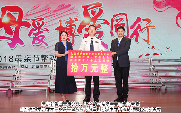 溫情五月天,感恩母親節(jié)。2018年5月12日,綠之韻“牽手母愛·綠韻同行”愛心活動(dòng)暨關(guān)愛貧困母親活動(dòng)走進(jìn)湖南省女子監(jiān)獄。國家司法部監(jiān)獄管理局處長李紅衛(wèi),北京博愛婦女發(fā)展慈善基金會(huì)會(huì)長陳富剛以及湖南省女子監(jiān)獄領(lǐng)導(dǎo)出席活動(dòng)。綠之韻集團(tuán)董事總裁、綠之韻公益基金會(huì)理事長勞嘉,綠之韻集團(tuán)常務(wù)副總經(jīng)理胡均安,黨委書記劉云,綠之韻公益基金會(huì)秘書長蔣文帶領(lǐng)綠之韻愛心志愿者與百余名女性服刑人員、家屬零距離接觸,并向湖南省女子監(jiān)獄捐贈(zèng)10萬元愛心善款。
