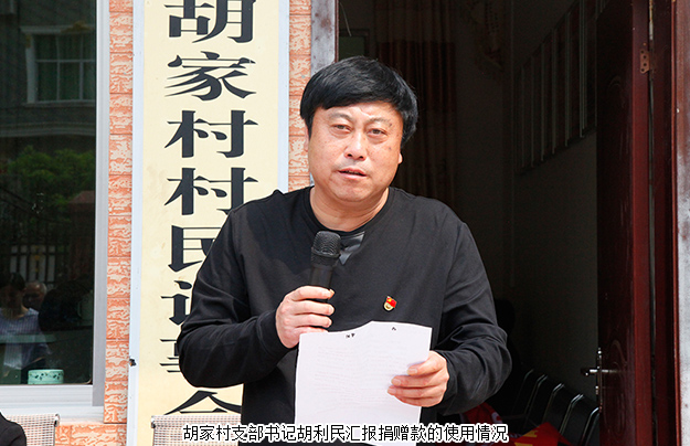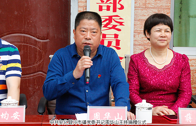 捐贈(zèng)儀式由中共安化縣冷市鎮(zhèn)黨委書(shū)記周華山主持?;顒?dòng)伊始,中共安化縣冷市鎮(zhèn)黨委副書(shū)記、鎮(zhèn)長(zhǎng)方平向大家簡(jiǎn)單介紹了胡家村的發(fā)展和扶貧情況。他在講話中對(duì)胡國(guó)安董事長(zhǎng)飲水思源,回饋家鄉(xiāng)的善舉,對(duì)綠之韻集團(tuán)精準(zhǔn)扶貧、回報(bào)桑梓的高尚情操表示了高度的肯定與贊許。他表示,冷市鎮(zhèn)委、胡家村村委一定會(huì)懷著感恩的心態(tài),將這筆善款用到胡家村的基礎(chǔ)設(shè)施建設(shè)當(dāng)中,將胡國(guó)安董事長(zhǎng)的愛(ài)心善舉發(fā)揮出更大的效益。隨后 ,胡家村支部書(shū)記胡利民向大家匯報(bào)了用于修建公路的捐贈(zèng)款的使用情況。湖南省政協(xié)委員、湖南省工商聯(lián)(總商會(huì))副會(huì)長(zhǎng)、綠之韻集團(tuán)董事長(zhǎng)胡國(guó)安向胡家村村委會(huì)捐贈(zèng)60萬(wàn)元款物支票。中共安化縣冷市鎮(zhèn)鎮(zhèn)長(zhǎng)方平、胡家村支部書(shū)記胡利民代表冷市鎮(zhèn)政府分別向綠之韻集團(tuán)常務(wù)副總經(jīng)理胡均安、黨委書(shū)記劉云頒發(fā)了愛(ài)心捐贈(zèng)牌匾。
