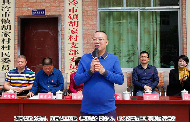 裊裊鄉(xiāng)音濃,拳拳桑梓情。2018年4月3日“情系家鄉(xiāng)建設(shè),助力精準(zhǔn)扶貧”捐贈(zèng)儀式在胡家村村委舉行。湖南省政協(xié)委員、湖南省工商聯(lián)(總商會(huì))副會(huì)長(zhǎng)、綠之韻集團(tuán)董事長(zhǎng)胡國(guó)安向胡家村村委會(huì)捐助善款60萬(wàn)元,用于資助胡家村基礎(chǔ)設(shè)施建設(shè)。安化縣政協(xié)副主席蔣毅華,中共安化縣冷市鎮(zhèn)黨委書(shū)記周華山、中共安化縣冷市鎮(zhèn)黨委副書(shū)記、鎮(zhèn)長(zhǎng)方平,胡家村村支部書(shū)記胡利民,綠之韻集團(tuán)常務(wù)副總經(jīng)理胡均安,綠之韻集團(tuán)黨委書(shū)記劉云,綠之韻公益基金會(huì)秘書(shū)長(zhǎng)蔣文及綠之韻集團(tuán)黨員代表、胡家村黨員代表參加活動(dòng)。