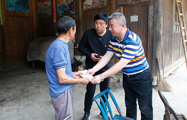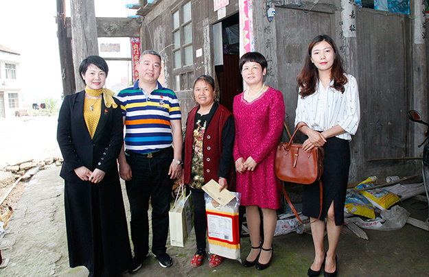 ▲ 2016年2月4日,胡國(guó)安董事長(zhǎng)帶領(lǐng)綠之韻愛(ài)心志愿者們?cè)俅位氐胶掖澹瑸榇謇锏呢毨?hù)送來(lái)了慰問(wèn)金、米油和日用品,為鄉(xiāng)親們送上了新春的祝福。
