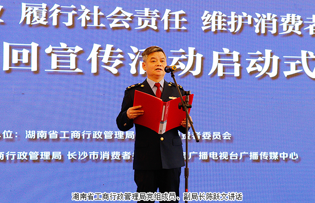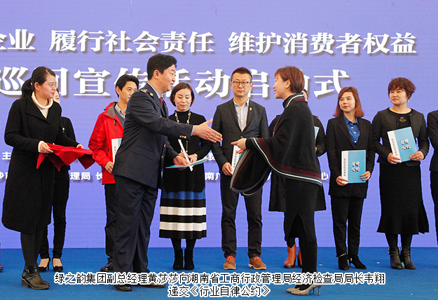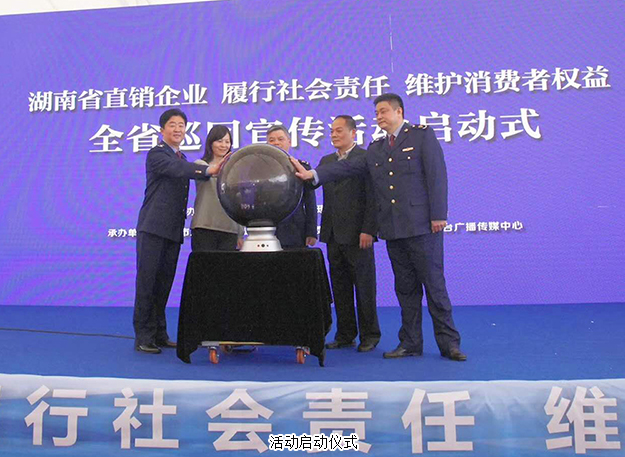2018年3月14日,湖南省直銷企業(yè)“履行社會責(zé)任、維護消費者權(quán)益”全省巡回宣傳活動啟動儀式在長沙舉行。湖南省工商行政管理局黨組成員、副局長陳躍文,湖南省消費者委員會副秘書長張前,湖南省工商行政管理局經(jīng)濟檢查局局長韋翔,湖南人民廣播電臺副臺長楊清,湖南省工商行政管理局經(jīng)濟檢查局副局長肖向陽等領(lǐng)導(dǎo)嘉賓蒞臨現(xiàn)場。綠之韻集團董事、總裁勞嘉,副總經(jīng)理黃莎莎、夏運良,湖南分公司經(jīng)理劉磊帶領(lǐng)部分員工和經(jīng)銷商代表參加此次活動。
