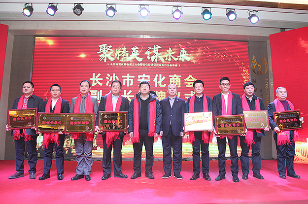 聚精英,謀未來。2018年2月4日,長沙市安化商會成立大會暨安化經(jīng)濟促進會長沙分會年會在長沙舉行。湖南省政協(xié)常委、長沙市政協(xié)副主席、長沙市工商聯(lián)主席彭繼球,中共益陽市委常委、統(tǒng)戰(zhàn)部部長周振宇,安化縣人民政府縣長肖義,長沙市民政局黨委副書記、副局長伍仁華,中共安化縣委副書記王新宇,益陽市人民政府駐長沙辦事處主任聶超美,長沙市工商聯(lián)副主席張明剛,安化縣政協(xié)副主席、總商會會長李艷云,長沙市社會組織管理局局長李紅輝等領(lǐng)導(dǎo)嘉賓出席會議。湖南省政協(xié)委員、湖南省工商聯(lián)(總商會)副會長、長沙市安化商會會長、綠之韻集團董事長胡國安,綠之韻集團董事、總裁勞嘉,綠之韻集團常務(wù)副總經(jīng)理胡均安,綠之韻集團副總經(jīng)理夏運良受邀參加活動。大會還邀請了來自深圳、廈門、株洲、益陽等兄弟安化商會及長沙各行業(yè)安化籍知名企業(yè)和精英人士 400 多人匯智聚力一堂,共謀發(fā)展大計。