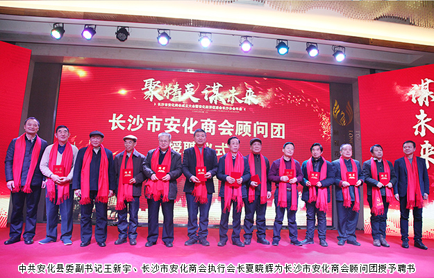 會議伊始,長沙市社會組織管理局局長李紅輝宣讀《長沙市民政局關(guān)于同意成立長沙市安化商會的行政許可決定》。安化經(jīng)濟促進會長沙分會理事長李蒲初致歡迎辭并作工作報告。他表示,長沙市安化商會的成立是全體安化籍企業(yè)家的一件大喜事,是搭建精誠合作、抱團發(fā)展,實現(xiàn)行業(yè)、區(qū)域大融合,增強在長安化老鄉(xiāng)凝聚力和向心力的平臺。未來,長沙市安化商會將為長沙的安化企業(yè)家構(gòu)建一個互幫互助、交流合作的平臺,為安化企業(yè)家在企業(yè)和政府之間建立一個橋梁和紐帶,發(fā)揮平臺優(yōu)勢,更好地服務(wù)企業(yè)、服務(wù)會員。原省公安廳黨委副書記、常務(wù)副廳長胡旭曦,原北京市公安局現(xiàn)役辦主任諶再來,原湖南省糧食局局長、黨組書記夏文星,原湖南省行業(yè)辦主任、黨組書記夏純玉等擔(dān)任商會顧問。