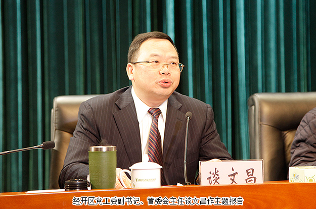 大會由瀏陽經(jīng)開區(qū)黨工委書記郭力夫主持。會議伊始,經(jīng)開區(qū)黨工委副書記、管委會主任談文昌代表區(qū)黨工委、管委會總結(jié)一年來工作情況。2017年,瀏陽經(jīng)開區(qū)實(shí)現(xiàn)了經(jīng)濟(jì)發(fā)展穩(wěn)中向好,穩(wěn)中趨優(yōu),全面完成了全年的目標(biāo)任務(wù)。園區(qū)被湖南省產(chǎn)業(yè)園區(qū)建設(shè)領(lǐng)導(dǎo)小組辦公室評定為全省134個產(chǎn)業(yè)園區(qū)中綜合評價第一名;在長沙市重大項(xiàng)目觀摩評比中排名國家級園區(qū)第一;生物醫(yī)藥眾創(chuàng)空間被國家科技部批準(zhǔn)為國家級眾創(chuàng)空間;園區(qū)企業(yè)實(shí)現(xiàn)2家在主板上市,2家在新三板掛牌。2017年已成為園區(qū)近年來推進(jìn)速度最快、發(fā)展勢頭最旺、增長質(zhì)量最好的一年。2018年,瀏陽經(jīng)開區(qū)經(jīng)濟(jì)工作的指導(dǎo)思想是:全面貫徹黨的十九大精神,根據(jù)省、市經(jīng)濟(jì)工作部署,以質(zhì)量效益為中心、以改革創(chuàng)新為動力、以項(xiàng)目建設(shè)為抓手,圍繞“產(chǎn)業(yè)項(xiàng)目建設(shè)年”的工作主題,著力“強(qiáng)產(chǎn)業(yè)、補(bǔ)短板、優(yōu)品質(zhì)、聚人氣”,努力實(shí)現(xiàn)“質(zhì)量變革、效率變革、動力變革”,開創(chuàng)新時代園區(qū)改革、創(chuàng)新、發(fā)展的新局面。