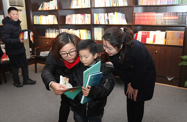 上午一大早,綠之韻志愿者們帶著家中的小朋友來(lái)到綠之韻黨建文化基地圖書(shū)室挑選書(shū)籍。綠之韻集團(tuán)董事總裁、綠之韻公益基金會(huì)理事長(zhǎng)勞嘉得知下午的活動(dòng)后,便來(lái)到圖書(shū)室與孩子們一起挑選適讀的書(shū)籍、畫冊(cè),為晨光中心的孤殘兒童送去最美好的祝愿。孩子們爭(zhēng)先恐后地向勞嘉總裁描述著自己挑選的書(shū)籍畫冊(cè),互相比拼著誰(shuí)挑選的書(shū)更有趣,誰(shuí)的書(shū)插畫更多,稚嫩童真的話語(yǔ)令現(xiàn)場(chǎng)志愿者們?nèi)炭〔唤?br/>