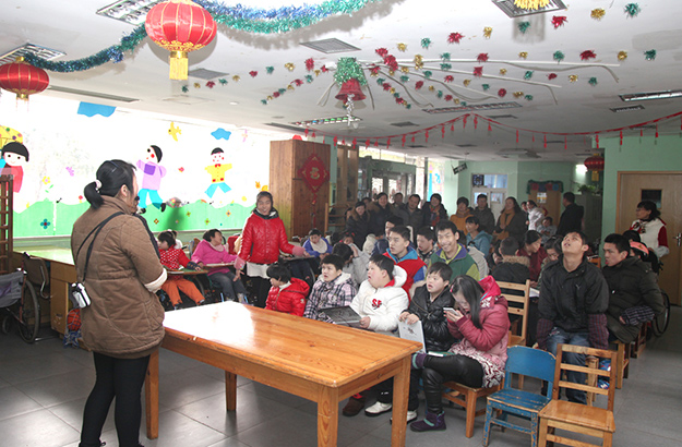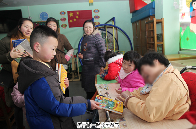布置溫馨的活動(dòng)室里,孩子們團(tuán)坐一起,觀看由晨光中心的孩子們帶來(lái)的精彩節(jié)目,并伴隨音樂(lè)打起了節(jié)拍。在隨后的自由活動(dòng)時(shí)間里,孩子們有的三兩成群共讀一本畫冊(cè),相互交流著書(shū)中的內(nèi)容;有活潑些的,帶著小孩在一起追逐玩游戲,活動(dòng)室里充滿了孩子們的歡聲笑語(yǔ)。