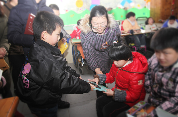 點(diǎn)點(diǎn)飛雪難以掩藏志愿者們的濃濃愛(ài)心,烈烈寒風(fēng)抵擋不住孩子們心中的融融暖意。2018年1月29日,綠之韻《我為你朗讀》第五期“溫暖在我心中”愛(ài)心活動(dòng)再度走進(jìn)長(zhǎng)沙彩虹晨光中心。在綠之韻生態(tài)科技黨支部的組織下,綠之韻集團(tuán)黨委書(shū)記劉云、綠之韻集團(tuán)市場(chǎng)管理中心業(yè)務(wù)總經(jīng)理曹兵、綠之韻集團(tuán)團(tuán)委書(shū)記王壯、綠之韻生態(tài)科技黨支部書(shū)記文錦瑞帶領(lǐng)2016年度優(yōu)秀黨員陳英、2017年度優(yōu)秀黨員林霞等十余名黨團(tuán)志愿者及其小孩來(lái)到了長(zhǎng)沙彩虹晨光中心,為可愛(ài)的孩子們送來(lái)了米油等生活必需品和圖書(shū)教輔資料,為這個(gè)寒冷的冬日增添一絲暖意。