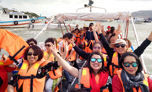 綠之韻營銷精英越南榮耀之旅的重頭戲便是出海,黑島、竹島、蠶島、海燕島,每一個(gè)島都有它的獨(dú)特韻味,冒著黑煙的古老木船從碼頭開往不同的島嶼。在島嶼上享用美食,享受海浪沙灘,海水的顏色從孔雀藍(lán)過度到深藍(lán),大朵大朵潔白的云,陽光灑向海面,每一幀剪影都是一幅風(fēng)景畫。