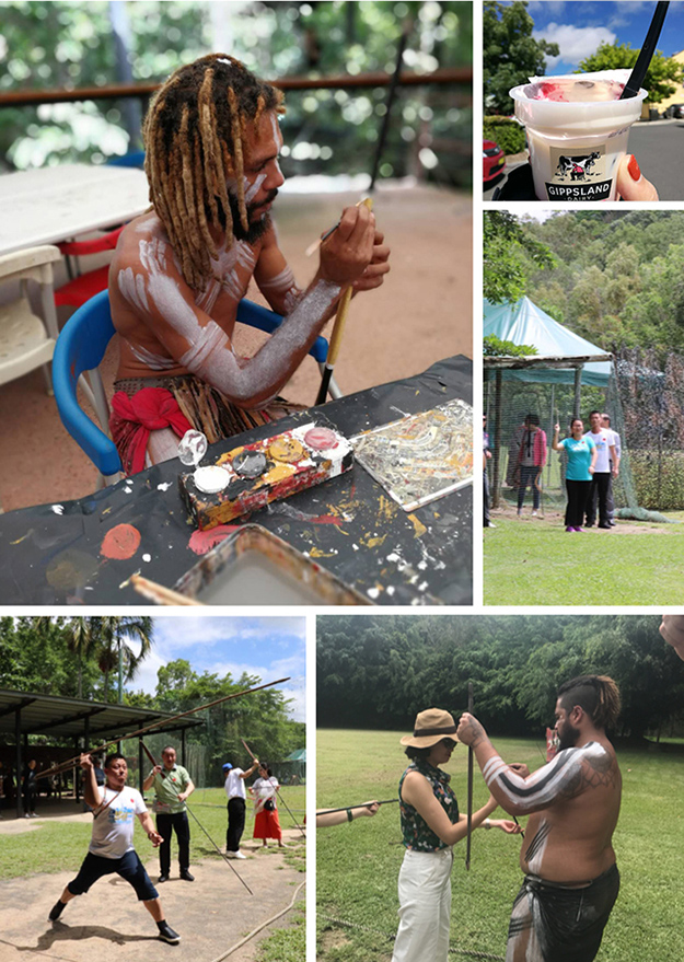 凱恩斯的查普凱土著文化公園是澳洲最負(fù)盛名的景區(qū)之一,其最大的特色是有著40000年歷史的查普凱土著文化。在這里,綠之韻家人們觀賞了查普凱部落的傳統(tǒng)表演,還了解了澳洲土著居民的傳統(tǒng)文化與習(xí)俗。在公園里有一片開闊的草原,土著人在進(jìn)行著飛去來標(biāo)表演,綠之韻人也加入其中體驗(yàn)了一把投擲飛去來標(biāo)的樂趣。