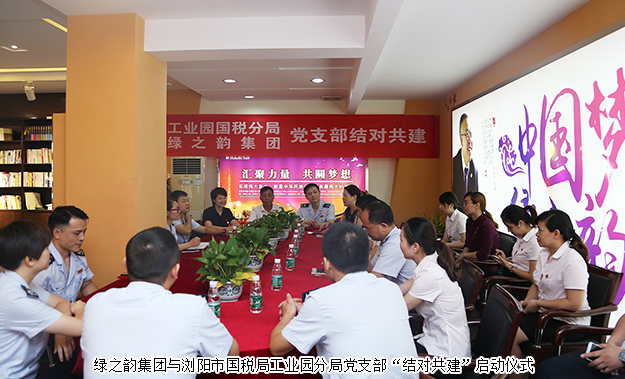 為深入貫徹落實(shí)黨的十八屆五中、六中全會(huì)精神,進(jìn)一步加強(qiáng)黨的基層組織建設(shè),增強(qiáng)基層黨支部工作活力和內(nèi)生動(dòng)力,2017年7月21日,綠之韻集團(tuán)與瀏陽市國稅局工業(yè)園分局黨支部“結(jié)對共建”啟動(dòng)儀式在綠之韻黨建文化教育基地成功舉行。瀏陽市國稅局工業(yè)園分局局長卜輝、副局長陳程,綠之韻集團(tuán)董事、總裁勞嘉,綠之韻集團(tuán)黨委書記劉云、副書記許達(dá)仲等出席活動(dòng)。