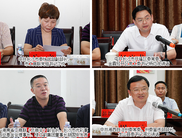 長沙市政協(xié)副主席、市工商聯(lián)主席彭繼球在講話中表示,此次市政協(xié)、市委統(tǒng)戰(zhàn)部、市工商聯(lián)、長沙金霞經(jīng)開區(qū)組織來到龍山縣對口扶貧活動,深入對接,精準幫扶,希望在各方努力下,有效推進各對口扶持項目的實施,發(fā)揮長沙市特色優(yōu)勢,集結各方力量和資源,共同發(fā)力,為龍山的精準脫貧加油助力。中共長沙市委常委、市委統(tǒng)戰(zhàn)部部長譚小平在講話中指出,市委市政府、市工商聯(lián)帶著責任、感情和友誼過來,針對龍山縣進行精準扶貧、對口幫扶,我們有信心有決心有責任將精準扶貧落到實處,希望有更多像綠之韻這樣省內知名企業(yè)在資金、項目等方面加大對湘西州龍山縣的傾斜支持,幫助貧困地區(qū)加快脫貧發(fā)展;龍山縣貧困群眾也要發(fā)揚自力更生、艱苦奮斗的精神,在當?shù)攸h委政府的幫助下,盡早脫貧致富。