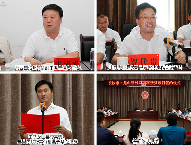 長沙市政協(xié)主席文樹勛在簽約儀式上作重要講話,他指出:近年來,為貫徹國家“精準扶貧、精準脫貧”戰(zhàn)略思想,全面落實中央和省委省政府部署要求,長沙市委市政府以及市直部門主要負責同志,先后數(shù)次專程赴龍山縣開展對口幫扶工作,特別是省會城市的企業(yè)家們,致富不忘回報社會,心系龍山脫貧發(fā)展,龍山經(jīng)濟社會發(fā)展取得了長足的進步、城鄉(xiāng)居民收入發(fā)生了翻天覆地的變化,龍山縣精準脫貧指日可待。他提出了下一步龍山縣茨巖塘鎮(zhèn)的精準扶貧工作三點要求:一是要抓好產業(yè)扶持,要把長沙的資金、技術、管理優(yōu)勢和茨巖塘鎮(zhèn)的資源稟賦和產業(yè)特色結合對接起來,扶持一批生態(tài)、文化、民俗產業(yè);二是要抓好項目援建,要突出民生重點,解決鄉(xiāng)民的衣食住行首要問題;三是要抓好教育培訓,扶貧先扶志,多舉辦龍山農民致富培訓班、加強技術人員現(xiàn)場指導,提高農戶種養(yǎng)殖水平,為農山人民脫貧致富提供智力支持。