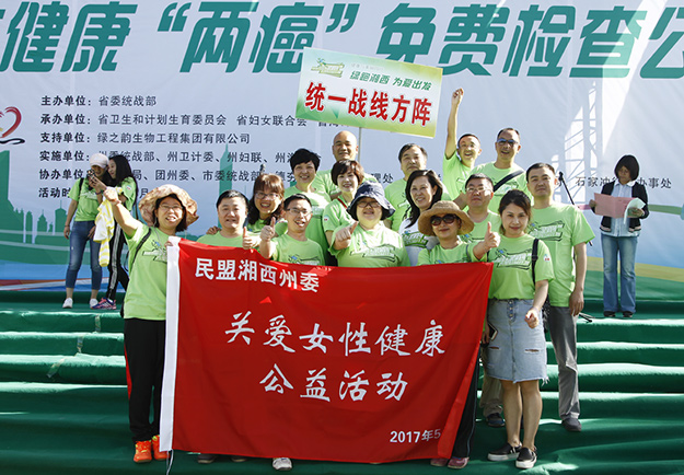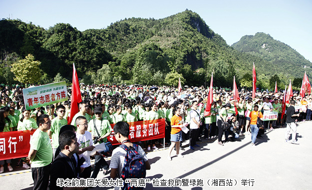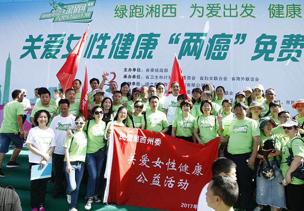 為切實(shí)把這項(xiàng)“造福廣大農(nóng)村家庭和關(guān)愛女性健康的民心工程”不折不扣地落實(shí)好,讓適齡婦女群眾真正得實(shí)惠、普受惠、長受惠。2017年5月13日,由中共湖南省委統(tǒng)戰(zhàn)部、湖南省婦女聯(lián)合會、湖南省衛(wèi)生和計(jì)劃生育委員會、湖南省海外聯(lián)誼會、中共湘西自治州委統(tǒng)戰(zhàn)部、湘西自治州婦女聯(lián)合會、湘西自治州衛(wèi)生和計(jì)劃生育委員會、湘西自治州海外聯(lián)誼會以及綠之韻集團(tuán)聯(lián)合開展的“關(guān)愛女性健康‘兩癌’免費(fèi)檢查暨綠跑公益活動”在湘西自治州吉首市舉行。