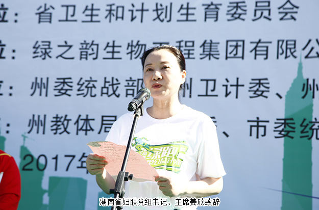 啟動儀式上,中共湘西自治州州委副書記、統(tǒng)戰(zhàn)部部長曹普華致辭:關(guān)愛女性健康,是各級黨委政府義不容辭的責(zé)任。湘西自治州將建立起政府主導(dǎo)、部門合作、醫(yī)療機(jī)構(gòu)實(shí)施、全社會參與的婦女“乳腺癌”和“宮頸癌”防治模式與協(xié)作機(jī)制,努力營造全社會關(guān)愛女性健康的良好氛圍。綠之韻集團(tuán)作為我省著名的大型非公企業(yè),多年來積極承擔(dān)社會責(zé)任,大力開展賑災(zāi)濟(jì)困、興教助學(xué)等公益活動,得到了社會的普遍贊譽(yù)。這次,綠之韻集團(tuán)與省委統(tǒng)戰(zhàn)部、省衛(wèi)計(jì)委、省婦聯(lián)、省海聯(lián)會組織對湘西、懷化、益陽三個(gè)市州的城區(qū)城鎮(zhèn)低保已婚婦女,開展3萬例“兩癌”免費(fèi)檢查,又一次彰顯了綠之韻集團(tuán)強(qiáng)烈的社會責(zé)任感和樂于奉獻(xiàn)的愛心情懷。湖南省婦聯(lián)黨組書記、主席姜欣在講話中指出“兩癌”免費(fèi)檢查,既是民生項(xiàng)目,更是民心工程。項(xiàng)目的實(shí)施,表明了各級黨委政府健康脫貧的責(zé)任與決心,彰顯了社會各界助力脫貧的熱情與力量,體現(xiàn)了廣大婦女群眾對健康生活的追求與向往。希望廣大婦女學(xué)習(xí)健康知識,提升健康意識,做到健康與美麗同行;希望更多像綠之韻集團(tuán)這樣的愛心企業(yè)加入到健康脫貧的行動中來,為貧困患病婦女送去更多的溫暖與關(guān)愛。湖南省政協(xié)委員、省工商聯(lián)(總商會)副會長、省慈善總會副會長、綠之韻集團(tuán)董事長胡國安致辭,他向蒞臨活動現(xiàn)場的各位領(lǐng)導(dǎo)、嘉賓,以及來自全國各地的“綠跑”愛好者、綠之韻家人們致以熱烈的歡迎和誠摯的問候。此次“兩癌”檢查救助暨公益“綠跑”,旨在將綠之韻發(fā)展融入到國家“健康中國”“精準(zhǔn)扶貧”戰(zhàn)略中,大力弘揚(yáng)健康向上、自信樂觀的生活理念,積極傳遞公益正能量,樹立起“健康+公益”的社會新風(fēng)尚。