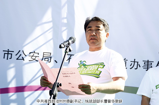 湖南省政協(xié)副主席、民盟省委主委楊維剛,中共湖南省委統(tǒng)戰(zhàn)部副部長胡東風(fēng),湖南省婦聯(lián)黨組書記、主席姜欣,州委副書記、州長龍曉華,州委副書記、統(tǒng)戰(zhàn)部部長曹普華,州委常委、吉首市委書記劉珍瑜,州人大常委會副主任、民盟州委主委劉小剛,州人民政府副州長李平,州政協(xié)副主席向頂天及湖南省政協(xié)委員、省工商聯(lián)(總商會)副會長、省慈善總會副會長、綠之韻集團(tuán)董事長胡國安,湘籍奧運(yùn)冠軍楊霞,綠之韻集團(tuán)(直銷業(yè)務(wù))副總經(jīng)理胡均安,綠之韻集團(tuán)黨委書記劉云等領(lǐng)導(dǎo)嘉賓,與來自全國各地的健康跑愛好者、綠之韻愛心志愿者、當(dāng)?shù)厝罕姽灿?jì)2000多人參與了此次活動,獻(xiàn)愛湘西,踐行公益,助力健康中國。