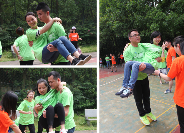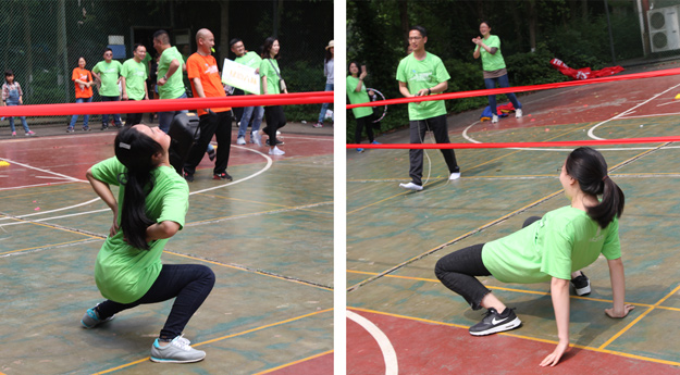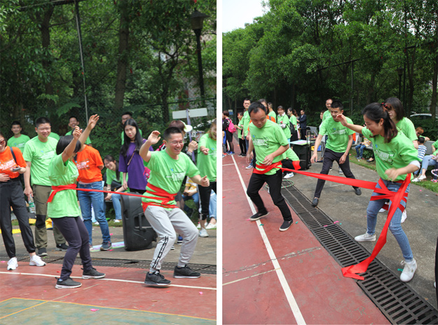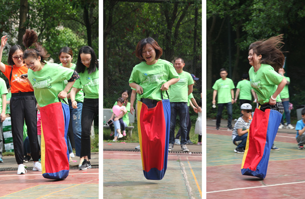稍作整理后,活動組委會將所有參加活動的員工分成了六組,在六個小組間展開了別開生面、妙趣橫生的趣味競技活動。比賽還沒開始,各隊成員就摩拳擦掌,躍躍欲試?!按筇庇螒蛑校胰藗兇┲按笱b”,哨聲一響,參賽隊員們使出了渾身解數,有的步伐輕盈輕松而過,有的奮力跳躍磕磕絆絆,有的手忙腳亂摔倒在地……參賽的家人縱情投入,場邊的助威吶喊聲連同歡笑聲此起彼伏,不絕于耳,將活動推向一個又一個的高潮。