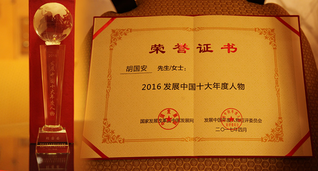 2016“發(fā)展中國年度人物”征評以“創(chuàng)新、協(xié)調(diào)、綠色、開放、共享”發(fā)展理念為指導(dǎo),以“挑戰(zhàn)、責(zé)任、創(chuàng)新”為關(guān)鍵詞,以“創(chuàng)新力、影響力、貢獻(xiàn)力、發(fā)展力、經(jīng)營力”為征評標(biāo)準(zhǔn),深度挖掘我國經(jīng)濟(jì)社會發(fā)展中標(biāo)志性事件及典型人物,在立足年度經(jīng)濟(jì)社會發(fā)展的同時,關(guān)注經(jīng)濟(jì)轉(zhuǎn)型中的標(biāo)志性事件和導(dǎo)向性人物,大力宣傳一批具有代表性和影響力的典型人物,弘揚(yáng)他們的先進(jìn)理念,展示他們的奮斗歷程,進(jìn)一步調(diào)動企業(yè)家的創(chuàng)業(yè)精神和創(chuàng)業(yè)激情,激勵他們?yōu)槲覈?jīng)濟(jì)社會發(fā)展做出更大貢獻(xiàn)。綠之韻集團(tuán)在胡國安董事長的引領(lǐng)下,堅持以尖端生物技術(shù)為依托,致力于發(fā)掘傳統(tǒng)中醫(yī)藥和五千年養(yǎng)生文化精髓。始終秉承“關(guān)愛生命、綠色產(chǎn)品、天然環(huán)保、質(zhì)高品優(yōu)”的產(chǎn)品理念,每年都投入大量的科研資金,引進(jìn)和培養(yǎng)高水平的科研專家、專業(yè)研究人才,并與南京大學(xué)、湖南中醫(yī)藥大學(xué)、湖南農(nóng)業(yè)大學(xué)、南方醫(yī)科大學(xué)等科研機(jī)構(gòu)和院校展開產(chǎn)學(xué)研戰(zhàn)略合作,全力打造“產(chǎn)學(xué)研”成功合作典范,在國內(nèi)通過多項國際權(quán)威認(rèn)證和國家高新技術(shù)專利。同時,公司積極響應(yīng)“鼓勵和支持民營企業(yè)結(jié)合金融資本上市”的號召,打造專業(yè)金融管理團(tuán)隊,培育大健康產(chǎn)業(yè)下的大金融產(chǎn)業(yè)布局體系,服務(wù)于國家“一帶一路”整體發(fā)展戰(zhàn)略。在發(fā)展實業(yè)的同時,綠之韻集團(tuán)穩(wěn)步推進(jìn)“互聯(lián)網(wǎng)+特色農(nóng)產(chǎn)品、服務(wù)三農(nóng)+產(chǎn)業(yè)扶貧”模式,精準(zhǔn)扶貧,產(chǎn)業(yè)富民。十四年來,綠之韻在胡國安董事長帶領(lǐng)下,踴躍參與和傾情捐助了教育、關(guān)愛老人、賑災(zāi)、扶貧、幫困等100多項社會慈善事業(yè),累計捐贈款物達(dá)6700多萬元。除了大力吸納就業(yè)、帶動創(chuàng)業(yè),綠之韻還采取扶持式帶動,鼓勵和幫助7000多人自主創(chuàng)業(yè);全力以赴推進(jìn)涉農(nóng)項目開發(fā),綠之韻湖南安化萬畝中藥材種植基地是湖南省委、省政府“萬企聯(lián)村·共同發(fā)展”30個省級重點示范項目之一,通過產(chǎn)業(yè)式、造血式扶貧,40萬受益農(nóng)民不需外出務(wù)工,實現(xiàn)了就地轉(zhuǎn)化就業(yè),促進(jìn)了當(dāng)?shù)亟?jīng)濟(jì)發(fā)展和社會和諧促,成為了幫助政府解決“三農(nóng)”難題的標(biāo)桿企業(yè)。