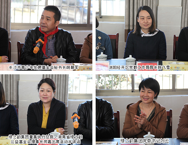 值此學(xué)雷鋒活動月之際,2017年3月2日,由長沙市青少年發(fā)展基金會、綠之韻集團黨委、湖南省綠之韻公益基金會聯(lián)合主辦的“新春慰問之愛在小河鄉(xiāng)”愛心助學(xué)回訪活動在瀏陽市小河鄉(xiāng)烏石村小學(xué)舉行。長沙市青少年發(fā)展基金會秘書長胡朝軍,國家級瀏陽經(jīng)開區(qū)黨群工作局局長陳飛雪、副局長晏瓊,瀏陽經(jīng)開區(qū)團委書記楊國理,綠之韻集團董事執(zhí)行總裁、湖南省綠之韻公益基金會理事長勞嘉,綠之韻集團黨委書記劉云等攜手綠之韻黨員、團員代表及愛心志愿者,回訪慰問湖南省綠之韻公益基金會“綠韻圓夢·書香助學(xué)”項目于2016年幫扶的10名貧困學(xué)生,并為他們送上慰問品,延續(xù)愛心。