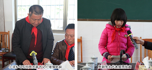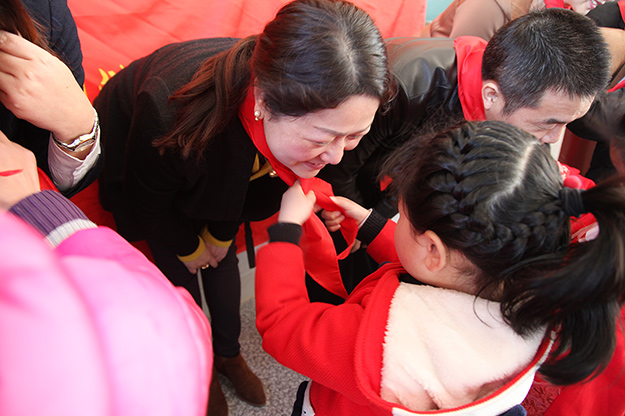 活動現(xiàn)場,孩子們?yōu)閰⑴c此次活動的領(lǐng)導(dǎo)及愛心志愿者們佩戴了紅領(lǐng)巾,以特殊的方式表達了他們的感激之情。會上,小河鄉(xiāng)烏石村黨支部書記卜繼燎首先致辭并對綠之韻集團黨委、綠之韻公益基金會的愛心善行表示感謝。這次的回訪活動,不僅僅表達了一份關(guān)懷,更傳遞著一種美德,一種精神,一種力量。