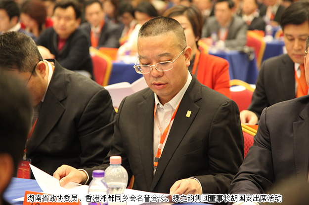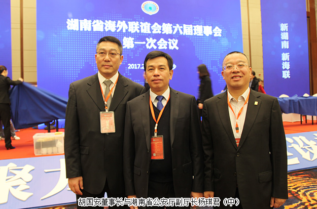 聚力新海聯(lián),建設(shè)新湖南。2017年2月18-19日,湖南省海外聯(lián)誼會第六屆理事會第一次會議在長沙隆重召開。中共湖南省委書記、省人大常委會主任杜家毫,中共湖南省委副書記、省人民政府省長許達哲,中共湖南省委常委、省委統(tǒng)戰(zhàn)部部長黃蘭香,湖南省人民政府副省長、省政府秘書長楊光榮,中央統(tǒng)戰(zhàn)部三局巡視員、中華海外聯(lián)誼會副秘書長許光任,中共湖南省委統(tǒng)戰(zhàn)部常務(wù)副部長譚平等領(lǐng)導出席活動。湖南省政協(xié)委員、香港湘都同鄉(xiāng)會名譽會長、綠之韻集團董事長胡國安受邀出席會議,并當選湖南省海外聯(lián)誼會第六屆理事會常務(wù)理事。