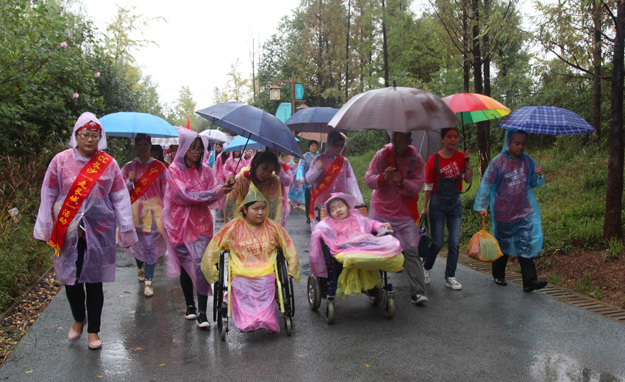“愛使我們?cè)谝黄?,我們手拉手;愛是我們的回答,面?duì)挑戰(zhàn);希望是我們的祝福,手拉手、心相連,我們是一家人。”愛心志愿者們?nèi)宄扇?,沿著既定的線路徒步前行,大家或打著雨傘、或穿著雨衣,以眼神鼓勁,用微笑問(wèn)候,憑借著堅(jiān)韌的意志和奉獻(xiàn)愛心的渴望,全部走完既定的環(huán)公園路程,安全返回,互致勝利的祝福,并合影紀(jì)念。