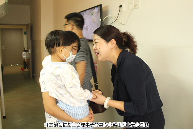在得知了“小芊玉”的情況之后,綠之韻公益基金會理事長勞嘉親赴醫(yī)院探望,并將愛心善款送到小芊玉父母手中,并表示,綠之韻集團將會持續(xù)關注“小芊玉”的治療情況,她也呼吁更多的愛心人士伸出援手,幫助“小芊玉”早日戰(zhàn)勝病魔,快樂健康地長大。在愛的接力下,小芊玉即將赴北京接受骨髓配型。關愛生命,綠之韻與愛同在!