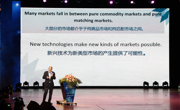 在全場(chǎng)最為熱烈與期待的掌聲中,埃爾文·羅斯教授帶來(lái)了“共享經(jīng)濟(jì)與市場(chǎng)設(shè)計(jì)”主題演講,他向觀眾展示了他的最新研究成果,提出了“共享經(jīng)濟(jì)時(shí)代,市場(chǎng)設(shè)計(jì)的核心在于匹配的穩(wěn)定”的理論,并通過(guò)案例深刻解析了“匹配市場(chǎng)”如何進(jìn)行市場(chǎng)分配以達(dá)到優(yōu)化市場(chǎng)資源配置,提高市場(chǎng)運(yùn)行的效率。