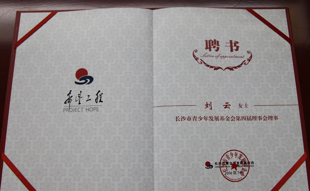 2016年7月1日,長沙市青少年發(fā)展基金會第四屆理事會第一次會議在青少年宮杜鵑樓二樓會議室舉行,會議誠邀湖南省民政廳社會組織管理局局長陳自力、副局長劉素榮,共青團長沙市委書記陳計偉、副書記葉妙參加。長沙青基會負責同志、理事會成員及特邀企事業(yè)單位參加會議,綠之韻集團黨總支書記劉云出席活動。