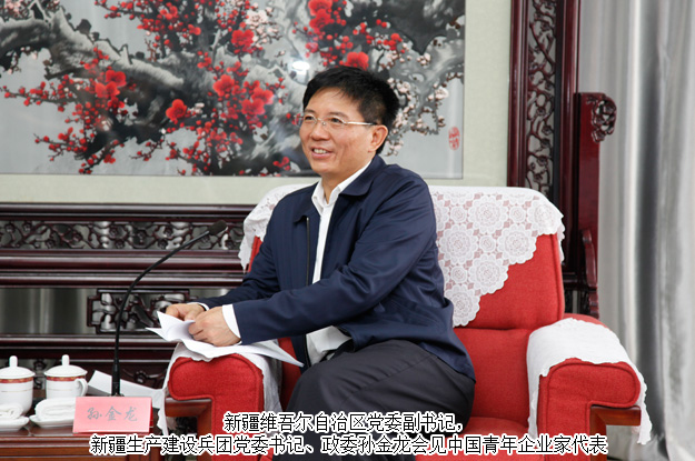 新疆維吾爾自治區(qū)黨委副書記,新疆生產(chǎn)建設兵團黨委書記、政委孫金龍代表兵團黨委和277萬兵團干部群眾對參加此次考察活動的各位青年企業(yè)家表示歡迎。孫金龍說,中國青年企業(yè)家協(xié)會是優(yōu)秀青年企業(yè)家的群眾組織,是一個人才的寶庫,充滿活力和希望。他希望各位青年企業(yè)家與兵團共同尋找發(fā)展商機的連接點、優(yōu)勢互補的結合點、合作互利的著力點,精選項目、大膽布局,力爭有一批項目能夠在兵團這片沃土上落地生根、開花結果。