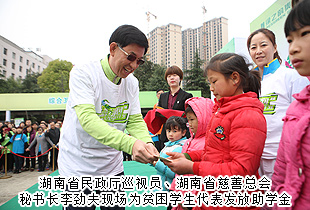 綠韻健跑,大愛(ài)隨行?;顒?dòng)現(xiàn)場(chǎng),10位來(lái)自瀏陽(yáng)烏石村的貧困學(xué)生代表在“綠跑”啟動(dòng)儀式上獲得愛(ài)心捐贈(zèng)。湖南省民政廳巡視員、湖南省慈善總會(huì)秘書(shū)長(zhǎng)李勁夫上臺(tái)發(fā)表講話,他表示,今年全國(guó)兩會(huì)上,中國(guó)首部《慈善法》通過(guò)審議。綠之韻作為具有高度責(zé)任感民族企業(yè),一直從事社會(huì)公益慈善事業(yè),是整個(gè)湖南省的企業(yè)公民旗幟代表。全民綠跑,堅(jiān)持“健康+慈善”的公益理念便是《慈善法》的生動(dòng)體現(xiàn)和最好宣傳。愛(ài)心改變命運(yùn),希望更多有愛(ài)心的人士和企業(yè)都能參與到公益慈善活動(dòng)中來(lái),幫助需要幫助的人一起脫貧致富,奔向小康。據(jù)悉,按照“綠跑”活動(dòng)規(guī)則,每一名在45分鐘內(nèi)跑完5公里全程的選手,都能募得由綠之韻公益基金會(huì)提供的1000元善款,用于面向貧困山區(qū)失學(xué)兒童、孤殘兒童、患病兒童群體的“綠+兒童關(guān)愛(ài)”精準(zhǔn)扶貧項(xiàng)目。