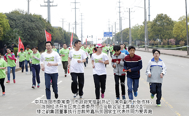 因夢(mèng)凝聚,為愛(ài)出發(fā)。綠之韻人洋溢青春與活力,承載滿滿的正能量,用速度與激情,邁開(kāi)堅(jiān)實(shí)而有力的步伐,向著愛(ài)和夢(mèng)想奔跑。2016年3月26日上午,由湖南省慈善總會(huì)指導(dǎo),瀏陽(yáng)市人民政府、國(guó)家級(jí)瀏陽(yáng)經(jīng)濟(jì)技術(shù)開(kāi)發(fā)區(qū)主辦,綠之韻集團(tuán)承辦的2016綠之韻大型全民公益計(jì)劃”(以下簡(jiǎn)稱(chēng)“綠跑”)在國(guó)家級(jí)瀏陽(yáng)經(jīng)濟(jì)技術(shù)開(kāi)發(fā)區(qū)熱力開(kāi)跑。