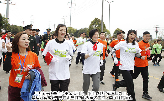 湖南省民政廳巡視員、湖南省慈善總會(huì)秘書(shū)長(zhǎng)李勁夫,湖南省民政廳民間組織管理局副調(diào)研員鄂立輝,國(guó)家級(jí)瀏陽(yáng)經(jīng)濟(jì)開(kāi)發(fā)區(qū)管委員會(huì)主任郭力夫,中共瀏陽(yáng)市委常委、市政府黨組副書(shū)記、常務(wù)副市長(zhǎng)張作林,瀏陽(yáng)經(jīng)濟(jì)開(kāi)發(fā)區(qū)黨工委委員、工會(huì)聯(lián)合會(huì)主席胡漢圣蒞臨活動(dòng)現(xiàn)場(chǎng),中國(guó)宋慶齡基金會(huì)基金部部長(zhǎng)、羽毛球世界冠軍唐九紅,奧運(yùn)冠軍高敏、錢(qián)紅、王麗萍、龔睿那,湖南衛(wèi)視著名主持人李兵等明星大咖傾情助陣。綠之韻集團(tuán)董事長(zhǎng)胡國(guó)安,快樂(lè)汽車(chē)集團(tuán)、快樂(lè)紅館傳媒董事長(zhǎng)周曄,綠之韻集團(tuán)董事執(zhí)行總裁勞嘉攜高管團(tuán)隊(duì)、集團(tuán)戰(zhàn)略委委員等,以及來(lái)自全國(guó)各地的2000多名綠之韻家人共同參與了此次活動(dòng),一起為愛(ài)奔跑,為健康中國(guó)加油!