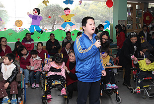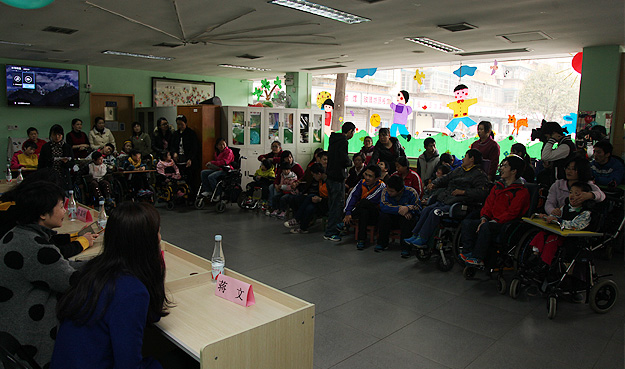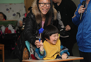 活動中,大家在晨光中心老師的帶領(lǐng)下,參觀了中心電腦課程、康復(fù)課程、語言課程等,詳細了解了孩子們平日的康復(fù)、生活、學(xué)習(xí)情況,并觀看了孩子們精心準備的豐富多彩的文藝節(jié)目,與他們進行了親切歡快地互動,孩子們的熱情的投入感染著在場的每一個人,贏得了陣陣的掌聲和歡呼聲。