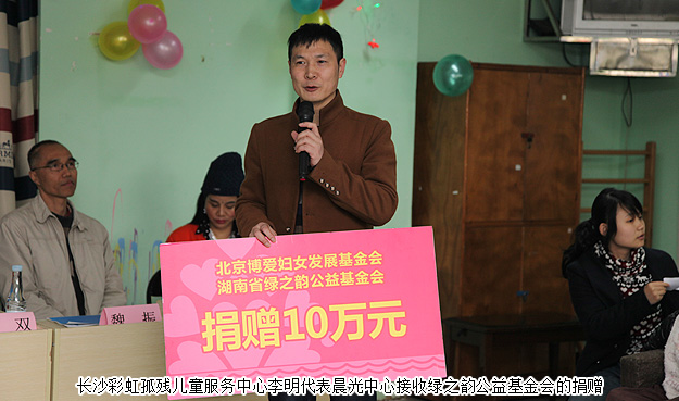在綠之韻公益基金會為孤殘兒童發(fā)放救助金的儀式上,長沙慈善會副會長、市慈善基金會副理事長兼秘書賀國謙鼓勵孩子們樹立生活信心,并且呼吁社會各界能給孤殘兒童更多關(guān)愛,傳遞社會公益力量,使這些殘疾孩子與其他孩子們一樣共同沐浴在陽光下,茁壯成長。