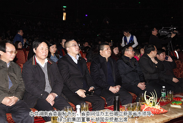2016年1月17日下午,由綠之韻集團(tuán)獨(dú)家冠名的第二屆湖南省網(wǎng)絡(luò)春節(jié)聯(lián)歡晚會在長沙琴島演藝中心濃情上演,長達(dá)3個(gè)小時(shí)的全程無間斷現(xiàn)場直播,一場互聯(lián)網(wǎng)時(shí)代狂歡盛宴完美落下帷幕。本屆晚會由湖南省委宣傳部、省長株潭兩型試驗(yàn)區(qū)工委、省委網(wǎng)信辦等單位指導(dǎo),湖南省網(wǎng)絡(luò)視聽協(xié)會、紅網(wǎng)主辦,紅網(wǎng)論壇、綠網(wǎng)承辦。華聲在線、芒果TV、大湘網(wǎng)、星辰在線、尚一網(wǎng)、湖南綠網(wǎng)、新浪湖南、人民網(wǎng)湖南頻道、新華網(wǎng)湖南、鳳凰網(wǎng)湖南以及紅網(wǎng)各地州市頻道等全程協(xié)辦。中共湖南省委副秘書長、省委網(wǎng)信辦主任卿立新等省市領(lǐng)導(dǎo)、綠之韻集團(tuán)董事長胡國安受邀出席。