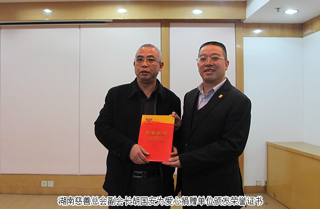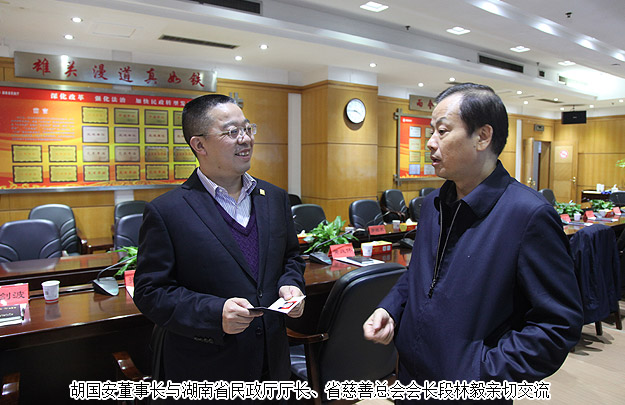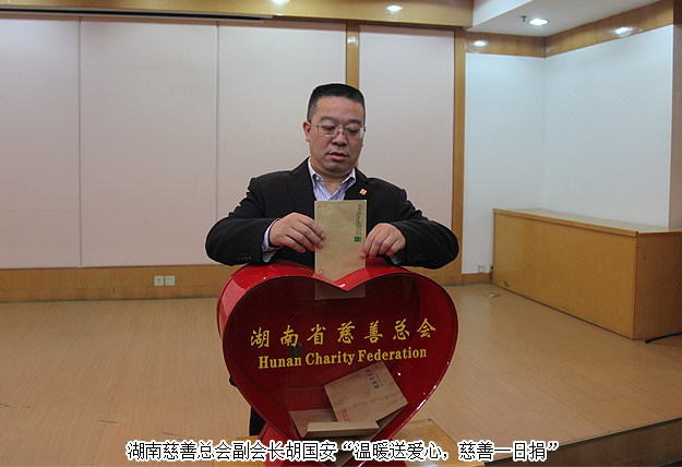 2016年1月6日,“2016年慈善一日捐”在省民政廳機(jī)關(guān)舉行捐贈(zèng)儀式活動(dòng),這標(biāo)志著湖南省慈善總會(huì)倡導(dǎo)的“2016年送溫暖獻(xiàn)愛心·慈善一日捐”活動(dòng)正式啟動(dòng),現(xiàn)場(chǎng)注入第一筆愛心款84900元。湖南省民政廳廳長(zhǎng)、省慈善總會(huì)會(huì)長(zhǎng)段林毅作了動(dòng)員講話;湖南省政協(xié)原主席、省慈善總會(huì)會(huì)長(zhǎng)王克英同志,湖南省委原副書記謝康生、原湖南省人大常委會(huì)副主任羅桂求等省老領(lǐng)導(dǎo)出席了活動(dòng),并帶頭進(jìn)行捐贈(zèng)。湖南慈善總會(huì)副會(huì)長(zhǎng)、綠之韻集團(tuán)董事長(zhǎng)胡國(guó)安先生參與捐贈(zèng),同時(shí)為愛心捐贈(zèng)單位頒發(fā)榮譽(yù)證書。