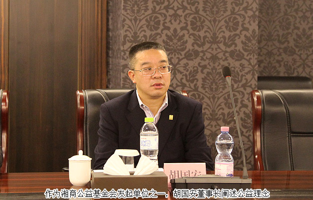 2016年1月5日,湖南省工商聯(lián)(總商會(huì))全體主席會(huì)長(zhǎng)召開,中共湖南省委常委、省委統(tǒng)戰(zhàn)部部長(zhǎng)黃蘭香,湖南省副省長(zhǎng)、省工商聯(lián)主席何報(bào)翔等出席會(huì)議并講話。同時(shí),由省工商聯(lián)、綠之韻集團(tuán)、愛爾眼科等聯(lián)合籌資600萬(wàn)元成立的湖南省湘商公益基金會(huì)在本次會(huì)議中正式成立。中共湖南省委常委、省委統(tǒng)戰(zhàn)部部長(zhǎng)黃蘭香為基金會(huì)成立授牌,綠之韻集團(tuán)董事長(zhǎng)胡國(guó)安作為湖南省工商聯(lián)(總商會(huì))副會(huì)長(zhǎng)、湘商公益基金會(huì)副理事長(zhǎng)出席會(huì)議。