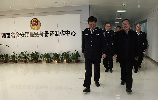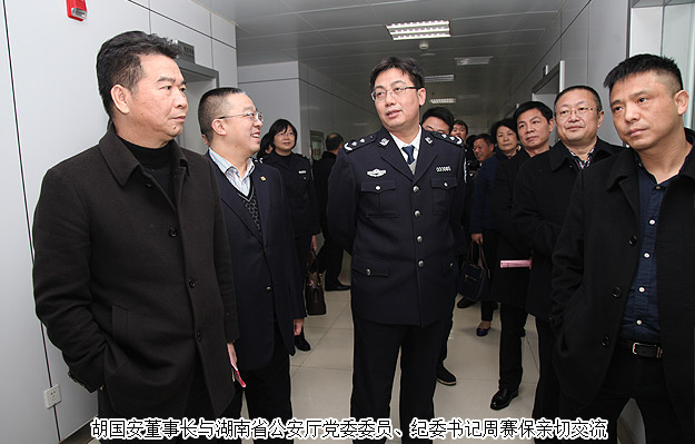2015年12月25日下午,湖南省政協(xié)委員、省公安廳特邀監(jiān)督員、綠之韻集團董事長胡國安隨同湖南省公安廳黨委委員、紀(jì)委書記周賽保,省公安廳副廳級干部徐發(fā)科,省公安廳紀(jì)委副書記宋紅兵,省公安廳治安總隊政委高洪金,省公安廳刑偵總隊政委馮偉儉,省公安廳交警總隊紀(jì)委書記周軍,省公安廳人口與出入境管理局副局長侯占先,省公安廳警令部研究室主任胡湘文,省公安廳政治部人事處副處長文南等一行赴湖南省公民信息管理局考察。