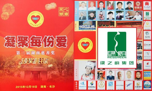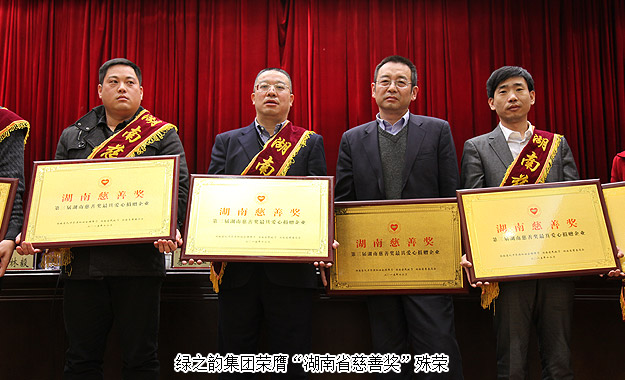 2015年12月18日上午,湖南省慈善總會(huì)第三次會(huì)員代表大會(huì)暨第三屆“湖南慈善獎(jiǎng)”表彰大會(huì)在長(zhǎng)沙舉行。中華慈善總會(huì)副會(huì)長(zhǎng)李宏塔,中華慈善總會(huì)秘書(shū)長(zhǎng)邊志偉,湖南省政協(xié)原主席、省慈善總會(huì)第二屆理事會(huì)會(huì)長(zhǎng)王克英,湖南省人民政府副省長(zhǎng)蔡振紅,湖南省人民政府副秘書(shū)長(zhǎng)王光明,湖南省民政廳廳長(zhǎng)、黨組書(shū)記、省社會(huì)組織黨工委書(shū)記段林毅,湖南省民政廳巡視員、省社會(huì)組織黨工委副書(shū)記李勁夫等出席會(huì)議。會(huì)上,因?yàn)樵诠娲壬剖聵I(yè)中做出的重大貢獻(xiàn),湖南省工商聯(lián)(總商會(huì))副會(huì)長(zhǎng)、湖南省光彩事業(yè)促進(jìn)會(huì)副會(huì)長(zhǎng)、長(zhǎng)沙光彩基金會(huì)理事長(zhǎng)、綠之韻集團(tuán)董事長(zhǎng)胡國(guó)安當(dāng)選湖南省慈善總會(huì)副會(huì)長(zhǎng);綠之韻集團(tuán)被湖南省人力資源和社會(huì)保障廳、省民政廳、省慈善總會(huì)聯(lián)合授予“湖南省慈善獎(jiǎng)最具愛(ài)心捐贈(zèng)企業(yè)”殊榮。