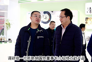 調(diào)研組一行首先參觀了綠之韻集團(tuán)大樓,聽取了胡國安董事長對綠之韻系列產(chǎn)品、集團(tuán)總部辦公區(qū)、企業(yè)資質(zhì)和榮譽(yù)展示區(qū)的介紹。綠之韻“以產(chǎn)品為導(dǎo)向的體驗(yàn)式營銷模式”和“移動(dòng)互聯(lián)網(wǎng)+直銷”的發(fā)展戰(zhàn)略,優(yōu)質(zhì)的產(chǎn)品研發(fā)體系、產(chǎn)學(xué)研合作模式以及良好的企業(yè)形象得到了考察組各位領(lǐng)導(dǎo)的高度認(rèn)可和贊譽(yù)。