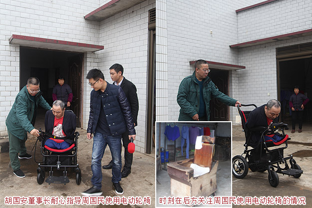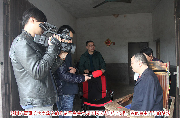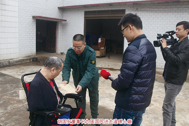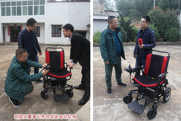 被周國(guó)民樂觀自強(qiáng)的精神所感動(dòng),綠之韻公益基金會(huì)攜手湖南經(jīng)視《鐘山說事》欄目讓夢(mèng)想照進(jìn)現(xiàn)實(shí),幫周國(guó)民購(gòu)置了嶄新的電動(dòng)輪椅,圓了他的自由行動(dòng)夢(mèng)。綠之韻集團(tuán)胡國(guó)安董事長(zhǎng)親自將輪椅組裝好,并耐心指導(dǎo)使用。