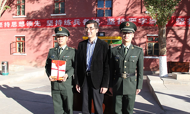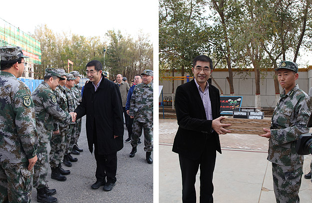 千年胡楊,不朽精神脊梁;大漠戈壁,盡顯英雄本色。在充滿光榮與夢想的甘肅酒泉衛(wèi)星發(fā)射基地,2015年10月24—27日,中共十八屆三中全會即將召開之際,“湘水情長”——湖南省政協(xié)委員文化擁軍活動在這里舉行?;顒佑煽傃b備部政治部、湖南省政協(xié)辦公廳主辦?;顒酉蚩傃b備部政治部指定的50個基層連隊捐贈價值過百萬的雜志書籍、計算機(jī)設(shè)備等?;顒佑珊鲜≌f(xié)副主席張大方帶隊前往,省政協(xié)副秘書長、辦公廳主任、研究室主任吳志憲、省政協(xié)研究室副主任江涌等領(lǐng)導(dǎo)也隨隊前往,湖南衛(wèi)視、基地東風(fēng)電視臺全程報道。綠之韻集團(tuán)作為活動支持單位,獲頒“湘水情長,文化擁軍”擁軍公益先進(jìn)單位,胡國安委員參與活動。